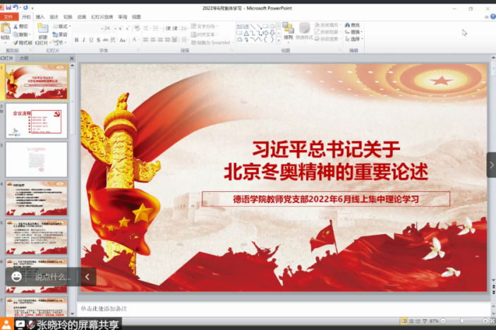 2022年6月29日下午,bw西汉姆联教师党支部召开线上会议,集体学习领悟习近平总书记关于北京冬奥精神的重要论述。