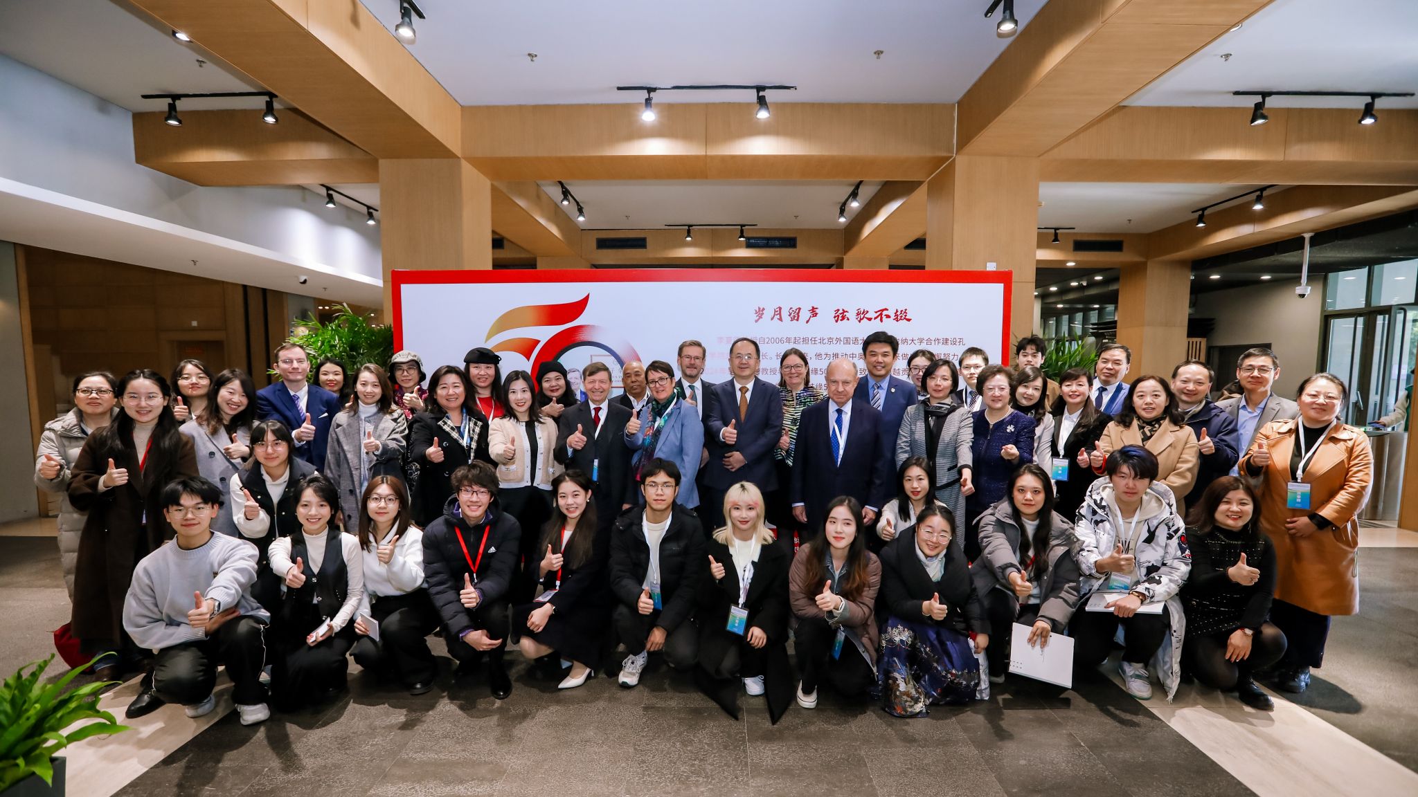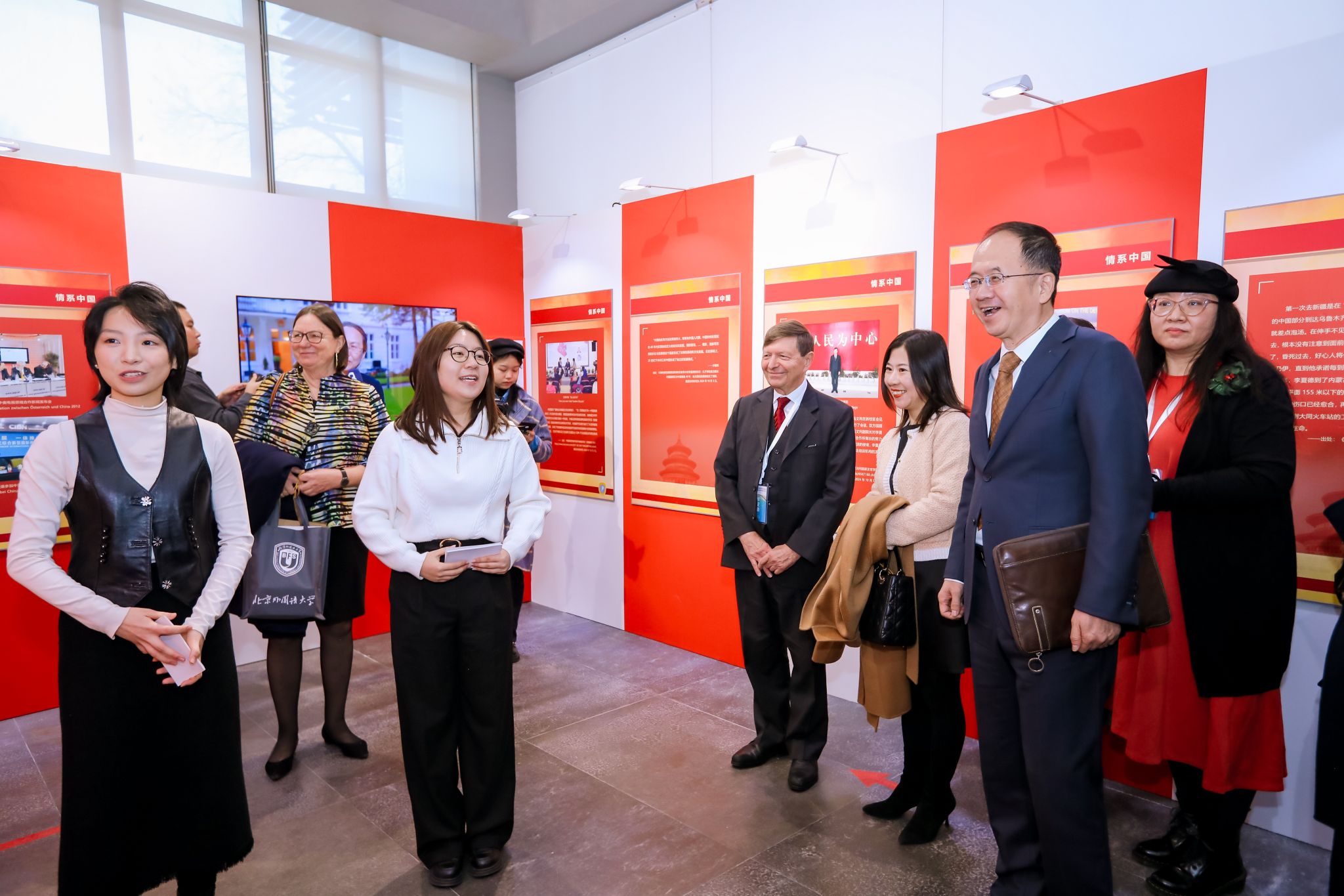开展仪式结束后,嘉宾们在讲解志愿者北外2021级本科生刘晨曦、2022级本科生黄婉茹的带领下参观了主题展。主题展共分为三个板块。第一板块“情系中国”介绍李夏德教授与中文和中国的结缘;第二板块“文心雕龙”介绍李夏德教授对奥地利维也纳大学孔子公司建设作出的贡献;第三板块“地利人和”是聚焦中国与李夏德教授的故乡——奥地利1971年建交以来的重要篇章。bw西汉姆联员工流利的德语、丰富的知识储备以及昂扬向上的精神风貌给嘉宾们留下了深刻印象。