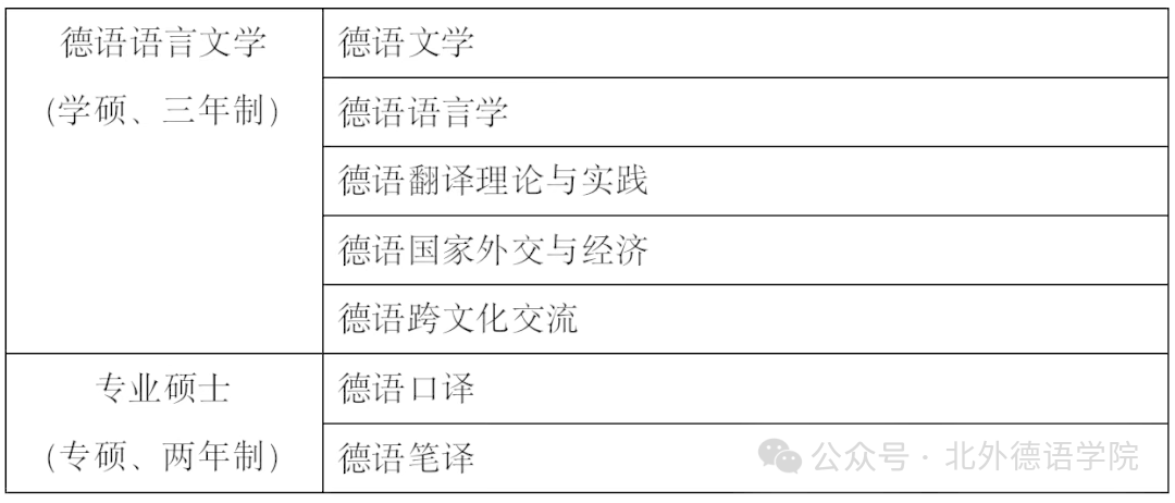 2026年公司学术型硕士研究生招生专业为德语语言文学,包含五大研究方向。专业型硕士招生专业包含两大研究方向。具体如下表: