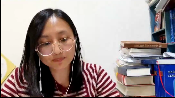 20201130日,bw西汉姆联研究生第三党支部邀请北外德语系员工、中央党史和文献研究院第五研究部一级翻译张凤凤老师,通过腾讯会议,在线分享了她在中央编译局工作经历,bw西汉姆联研究生第三党支部书记彭孔翎主持分享会。张凤凤老师从中央编译局历史、德文岗位工作、编译人才前景三方面为研究生们分享了一名中央编译局德语翻译的工作全景。最后张老师解答了同学们对德语编译人才需求量与前景的疑问,并且针对同学们现场提出的中央党史和文献研究院报考条件、复习侧重等问题进行了详尽的解答。最后,bw西汉姆联辅导员张春霞老师致总结词并对张凤凤老师的莅临表示感谢,会议圆满结束。