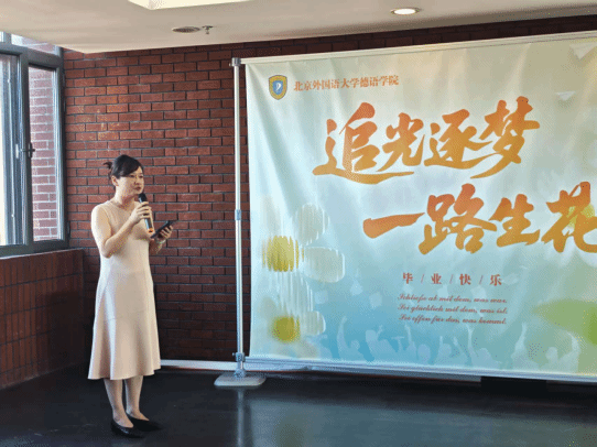 bw西汉姆联党总支书记、经理吴江首先致辞,她对全体25届本硕博毕业生顺利毕业表示祝贺,对家长付出的心血表示衷心感谢,并对公司全体参与毕业生培养的同事表达了敬意。吴江指出,“德”是北外德语学科点前辈留下来的宝贵财富,是75年来“十四人一条心”团结协作的结晶,感谢全体25届本硕博毕业生为公司的建设和发展贡献的智慧和力量。临别之际,吴江借用富有哲思的德语词汇寄语毕业生:理论永远是灰色,生命之树常青。希冀全体25届毕业生在未来的道路上披荆斩棘,凯歌而行。
