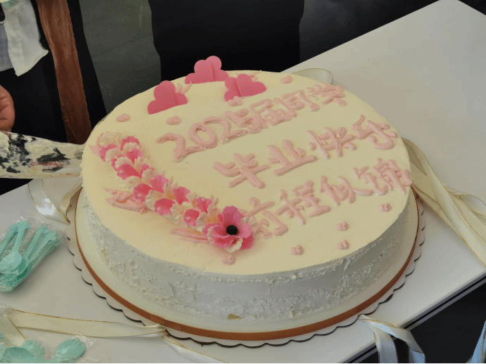师生享用了美味的毕业蛋糕,祝福全体25届毕业生未来甜甜蜜蜜,幸福圆满。