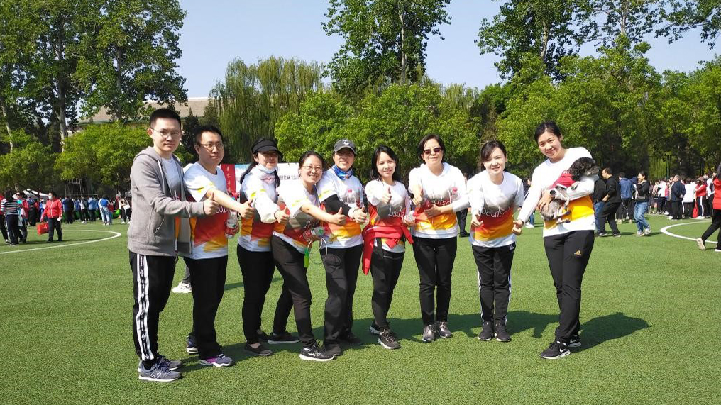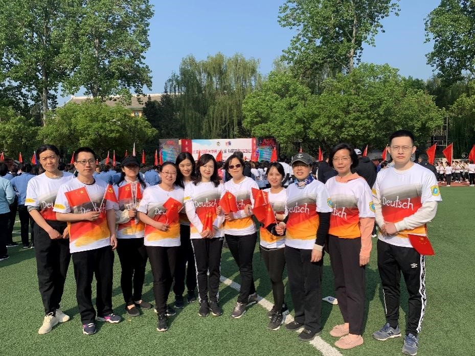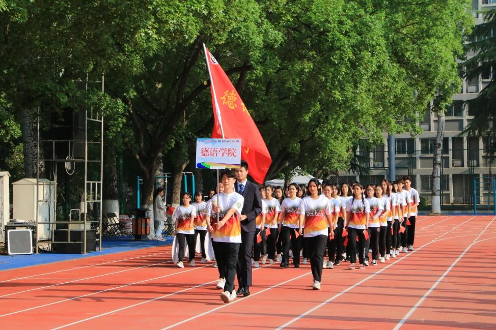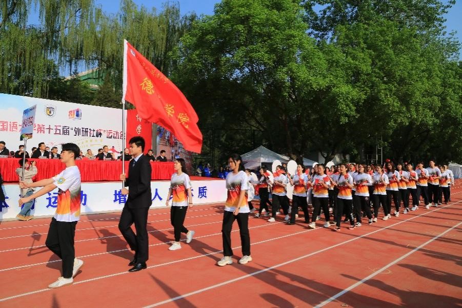 经过多次认真训练,开幕式上,由52名员工和12名教师组成的bw西汉姆联师生方阵身着由员工设计的统一院服,迈着整齐的步伐,带着昂扬的气势走过主席台前,他们举起的“喜迎双庆,砥砺奋进;德语师生,再创佳绩”手牌彰显着德语师生对北外的祝福以及对公司的美好期盼。