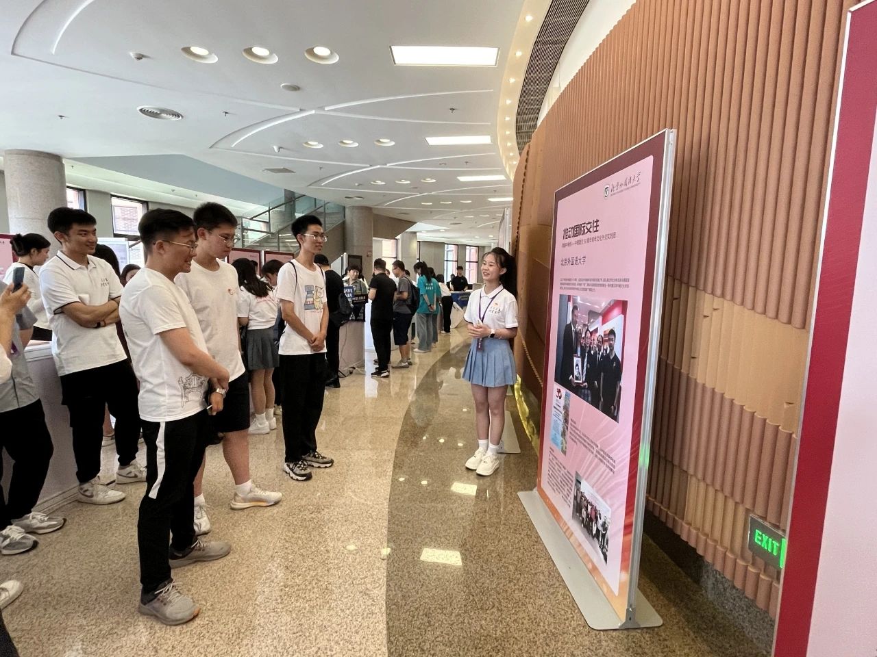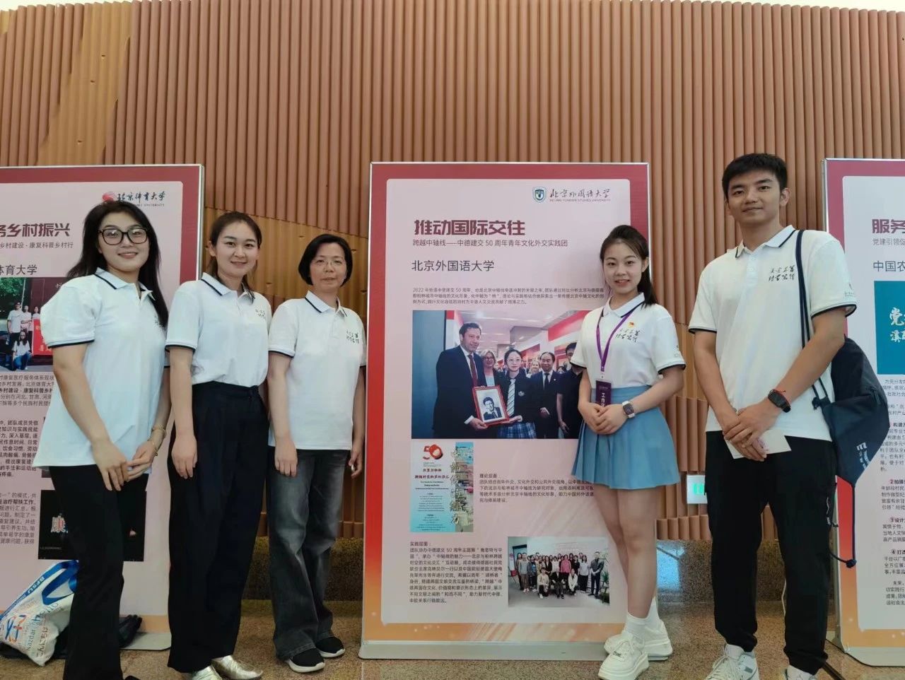 《跨越中轴线:基于北京中轴文化形象的对外话语体系调查研究》社会实践团队的优秀成 果,吸引了众多展览现场的师生驻足观看、观摩学习。公司团委志愿者与社会实践部也将继续全面贯彻落实党的二十大精神,聚焦全国老员工“三下乡”“返家乡”社会实践活动,组织同学们在实践中深入学习宣传习近平新时代中国特色社会主义思想,力求取得更多实效。