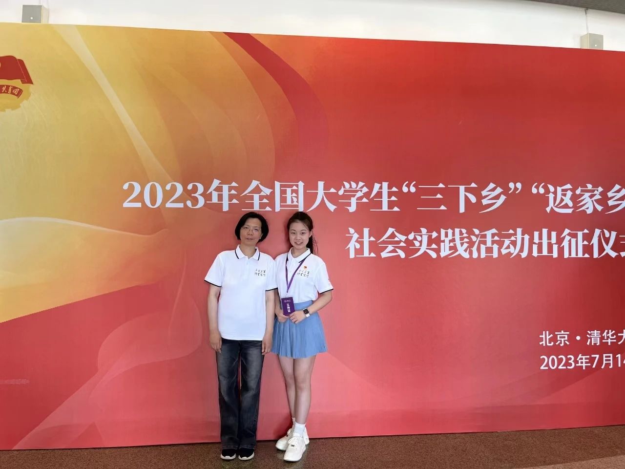 项目指导老师吴江与项目成员黄徐洋出席2023年全国老员工“三下乡”“返家乡”社会实践启动仪式