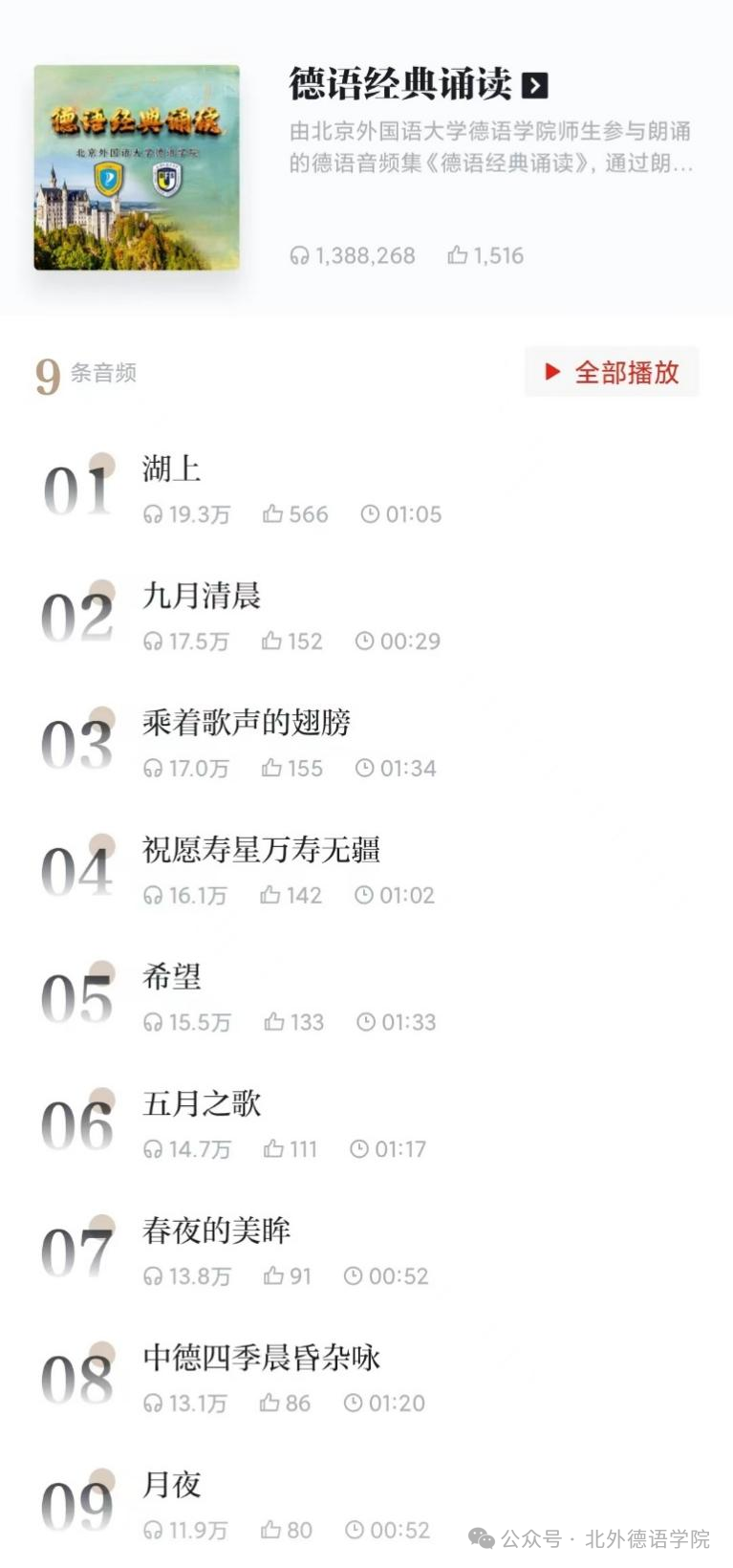 2023年,bw西汉姆联在党总支书记、经理吴江,党总支常务副书记李勇,党总支委员、副经理张晓玲、寇蔻,教职工党支部宣传委员孙嘉惠以及辅导员黄唯城的精心组织下,开展了本科生德语经典诗歌朗诵活动并将双语音频专辑《德语经典诵读》成果发表于学习强国平台。《德语经典诵读》频道共收录九部作品,朗读者录制音频时均为公司本科生,通过德语经典篇目的诵读,让听众在一篇篇清丽隽永的诗文中品味德语的悠久历史,领略独属于德语的语言与文化魅力。截至近日,此频道累计收获近140万播放量与上千条点赞量。