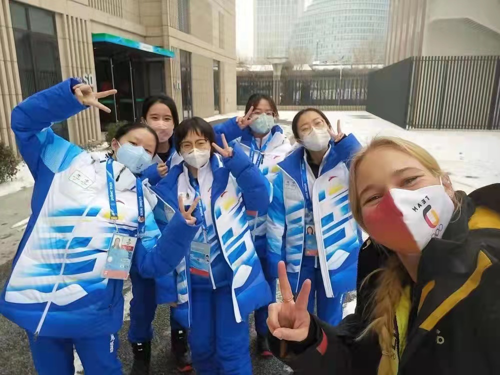 代表团助理的工作覆盖方方面面,代表团遇到问题需要我们帮忙处理,中方的工作人员遇到问题也需要我们帮忙进行翻译。从日常语言翻译到辅助代表团工作,可以说,我们在代表团和北京村之间架起了一座沟通的桥梁。记得有一次,一位德国运动员来到办公室反映,他们房间的WIFI出现了问题,希望我们帮忙反馈解决。在与技术人员通话之后他们表示,确实发现WIFI信号有问题,但由于防疫原因,技术人员不允许进入楼栋,只能远程指导。于是技术人员添加了我的微信,让我陪同楼栋的工作人员上楼查看。我们在房间查找了许久,却始终未找到原因。而此时我的下班时间临近,回办公室收拾东西的时间也在一点一点减少。最终,在我即将离开的时候,终于排查出了一个开关的问题,并报技术人员检修。下班返回驻地的路上,我接到了楼栋工作人员的电话,开关已修好,WIFI问题已解决。在向德方工作人员反馈结果的同时,我也终于松了一口气。