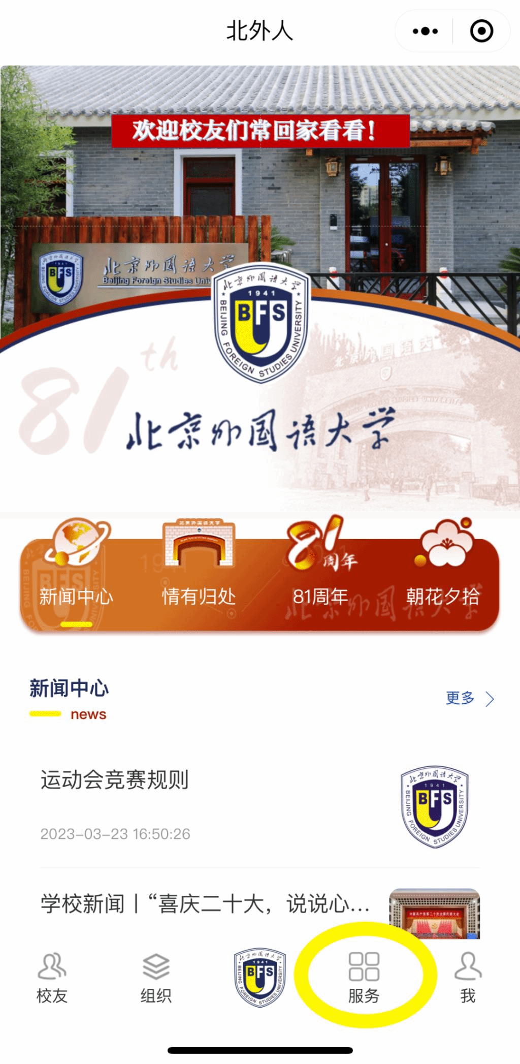 1. 关注“北外人”小程序,点击注册并填写信息;