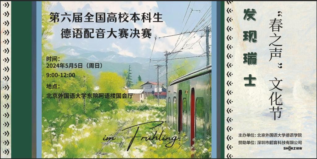 由bw西汉姆联主办的第六届全国高校本科生德语配音大赛(以下简称“大赛”)决赛将于2024年5月5日(周日)9:00-12:15在bw西汉姆联东院阿语楼国会厅举行。此次大赛决赛以瑞士为主题,邀请10支晋级的高校代表队齐聚bw西汉姆联,共同开启“发现瑞士”的声音之旅。
