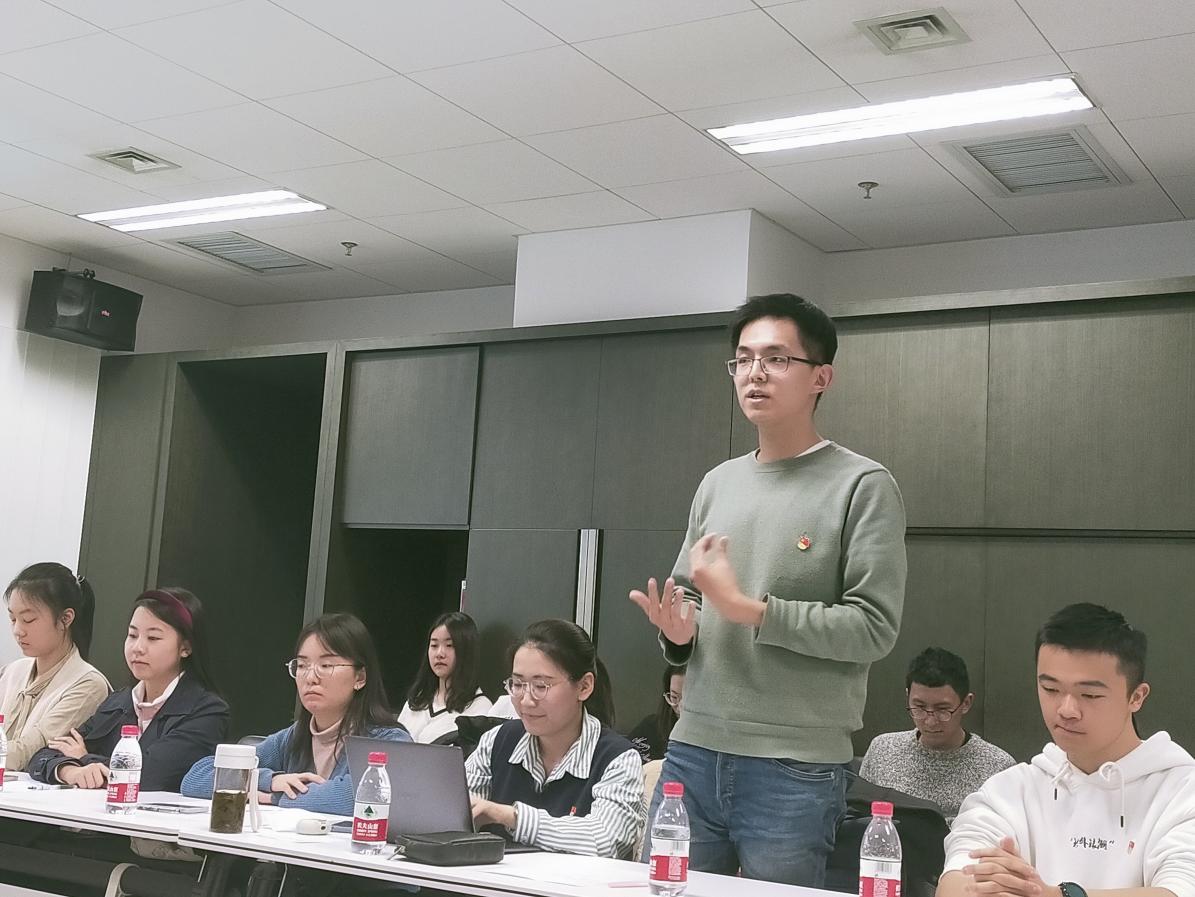 曹涵、张乃文、张楠、魏聪聪、孙策哈吉等同学围绕“如何讲好中国故事”发表了个人看法。曹涵介绍了他主持的课题“中轴线的智慧”,联合其他院系同学共同做了七个语种的系列作品,向外国介绍北京中轴线文化,用智慧的方式讲智慧的故事。胡志钢副书记肯定了这个课题的意义,希望这个课题能持续做好,不限于现在的七个语种,可以进一步联合更多的语种共同讲好中国的智慧故事。张乃文、张楠谈到自己作为北京冬奥会志愿者,不仅要有过硬的外语能力,更应加强对中国制度、文化的了解,向外国友人讲好中国的故事。魏聪聪、孙策哈吉谈了自己在德国留学的经历,德国人对中国的文化很感兴趣,但自己和同学们用德语向外国友人深入介绍中国制度和文化的能力还有差距,更加感受到了自己作为党员的责任与使命。
