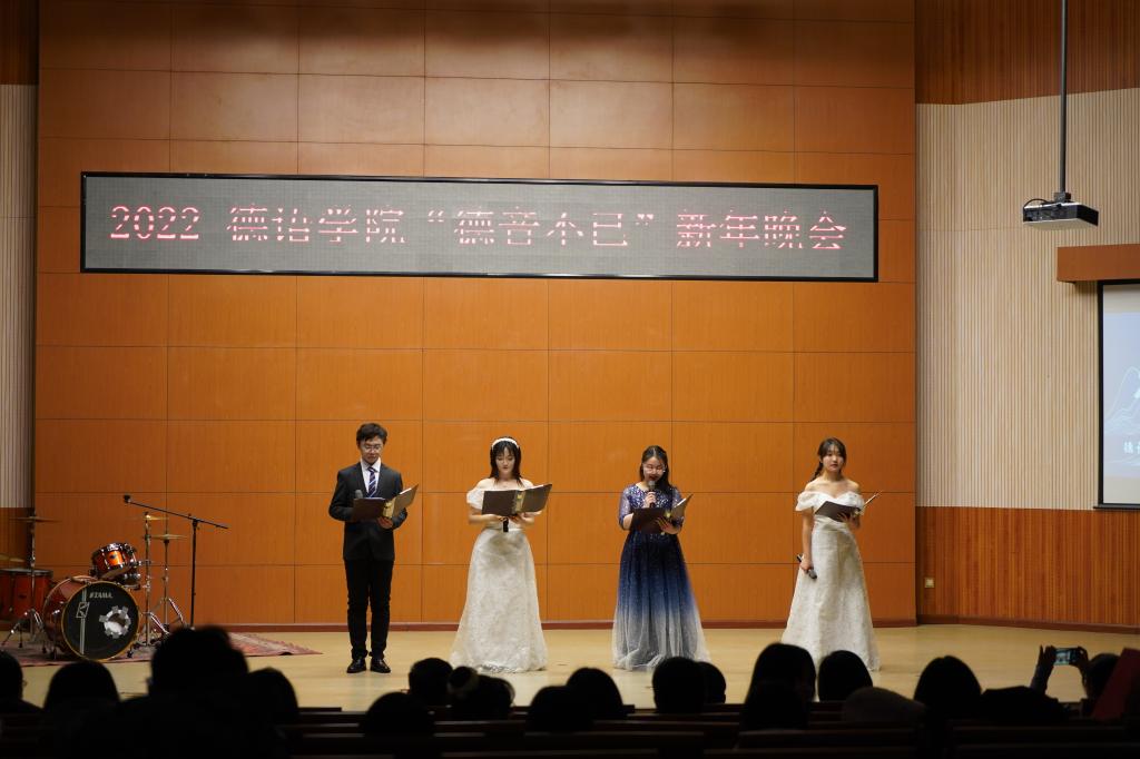 党总支副书记、经理吴江首先发表新年致辞,她用“德忆、德听、德行、德欣、德思、德辩、德音”等七个词总结bw西汉姆联2021年各项工作,感恩bw西汉姆联师生们的辛勤付出,向各位老师、同学们送上诚挚的新年祝福!晚会在bw西汉姆联师生们温馨的新年祝福视频中拉开序幕,bw西汉姆联老师和同学们各显神通,带来了舞蹈、朗诵、歌曲、电影配音、乐器演奏等节目,精彩纷呈,高潮迭起。