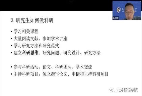 寇蔻首先从科研是什么、研究生为什么做科研进行简要介绍,重点说明如何做好科研工作。大量阅读文献、积极参与科研活动、学习研究方法与研究范式是做好科研的重中之重。