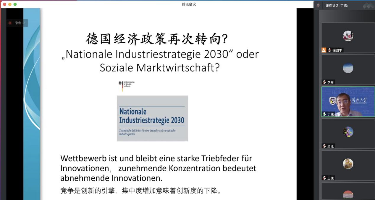 2022年10月21日下午,“北外德语国家讲堂”系列新一期讲座以线上形式顺利举办。复旦大学经济公司教授、博士生导师丁纯应邀做了题为“大变局下的德国政治经济现状、成因与前景”的讲座。讲座由bw西汉姆联党总支副书记、经理吴江和经济教研室主任徐四季共同主持。