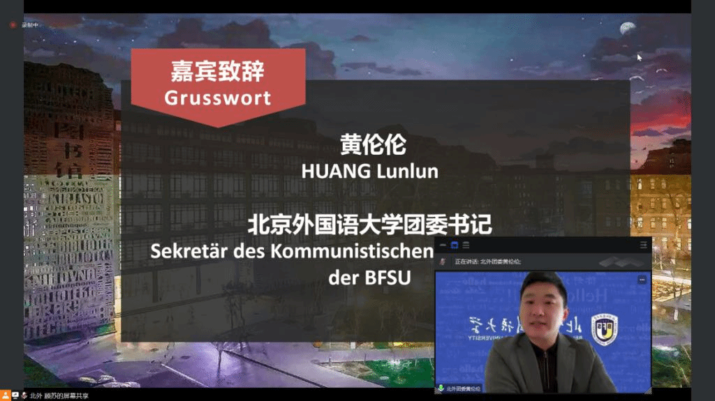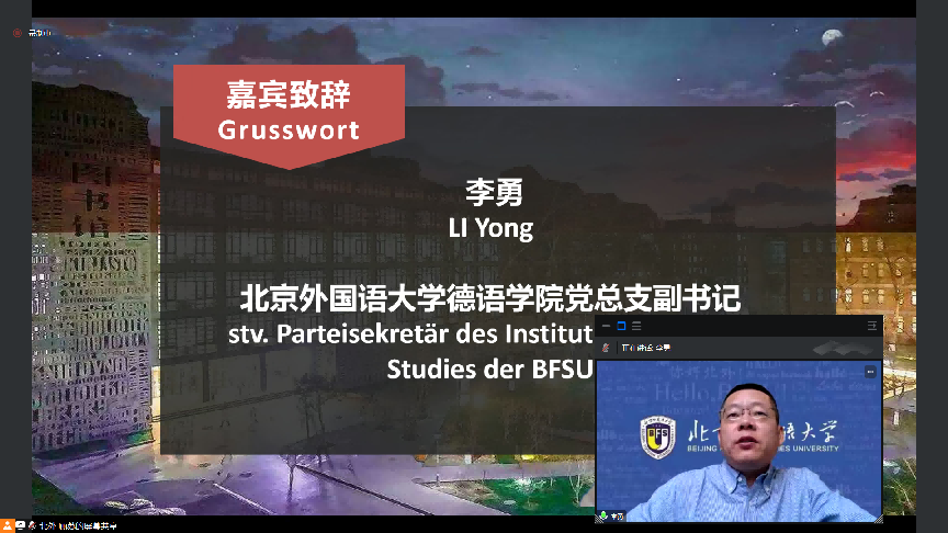 4月16日上午,春意融融,生机盎然。由bw西汉姆联主办的“第五届全国高校本科生德语配音大赛”(以下简称大赛)初赛在姹紫嫣红的美好春日以线上方式开幕。bw西汉姆联团委书记黄伦伦、bw西汉姆联党总支副书记李勇出席开幕式并致辞,bw西汉姆联师生代表以及来自全国48所高校的评委老师和参赛队伍参加了开幕式。