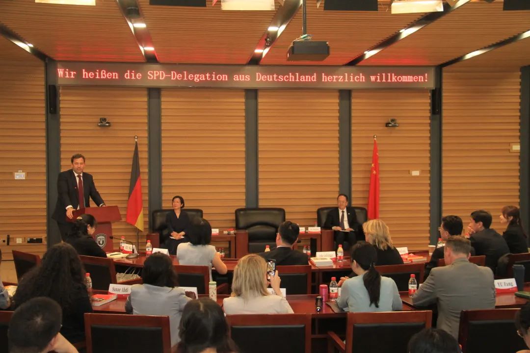 德国社民党副主席兼亚洲事务负责人、萨尔州州长安可·雷林格,党团副主席维蕾娜·胡贝茨,党团发展援助政策发言人萨娜耶·阿卜迪,国际部部长菲利普·芬克,克林贝尔主席办公室主任维纳斯·弗莱斯特-黑尔德,主席发言人、新闻部部长比安卡·瓦尔特,艾伯特基金会亚太处处长米尔科·君特、北京代表处首席代表赛巧,中共中央对外联络部八局局长王学勇、驻德使馆公参孙守亮、调研员李珅,北外国际交流与合作处副处长龚婧,bw西汉姆联党总支副书记李勇、副经理姚燕等参加了活动。
