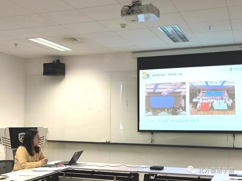 公司研究生会轮值主席、员工职业发展促进中心负责人刘丽丽分享了“一带一路”志愿服务工作心得,她提到作为北外德语人应谨记北外校训,继承北外传统,以青春之名传递中国温度,勇担讲好中国故事的时代使命。