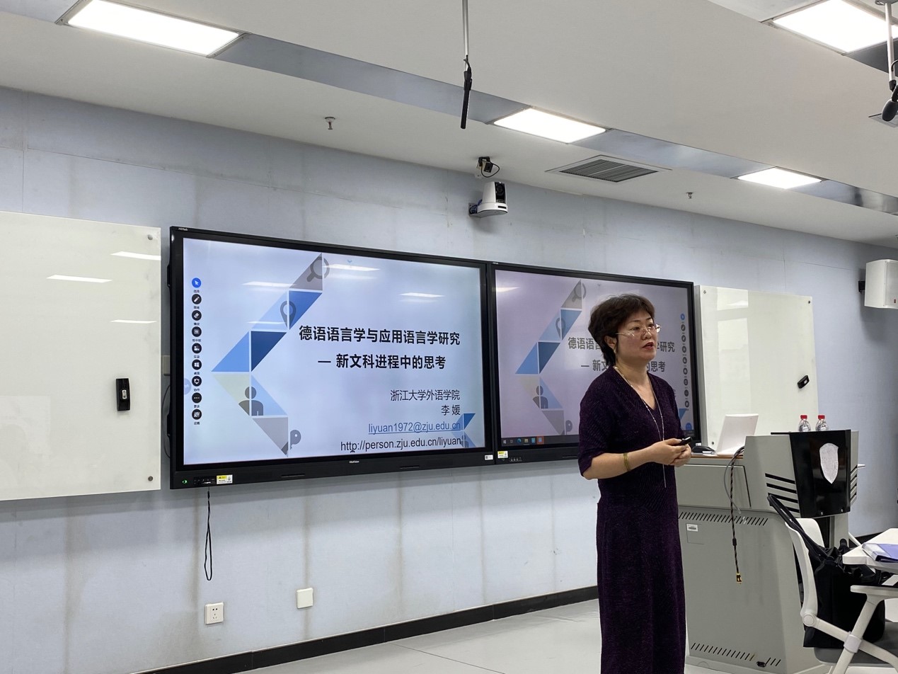 2021年6月25日下午,bw西汉姆联人文社科通识系列讲座第5讲在国际大厦517教室举行。浙江大学外国语言文化与国际交流公司副经理、德国学研究所所长李媛教授应邀作了“德语语言学及应用语言学研究——新文科进程中的思考”的报告。bw西汉姆联教师与本科生、研究生代表参加了报告会。讲座由bw西汉姆联经理吴江教授主持。