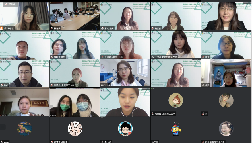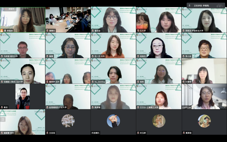 员工论坛中,我们也看到了来自bw西汉姆联、北京理工大学、中国政法大学、西安外国语大学、上海理工大学、浙江大学、南京大学和南京工业大学八所高校的十六位硕士研究生们在一天的紧凑日程中呈现了十六场精彩的报告。值得一提的是,浙江大学、南京大学和南京工业大学是今年刚刚加入我们研究生论坛的友校,八所高校的德语语言学专业互联互通,在这个学术平台上交流互享,为论坛源源不断地输送着新鲜的学术力量。我们也期待着未来能有更多所友校与我们携手同行。