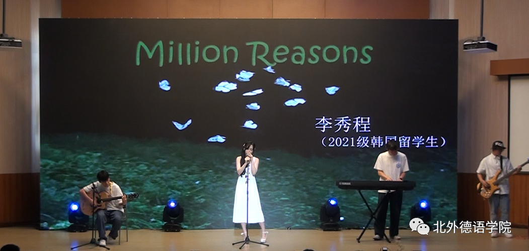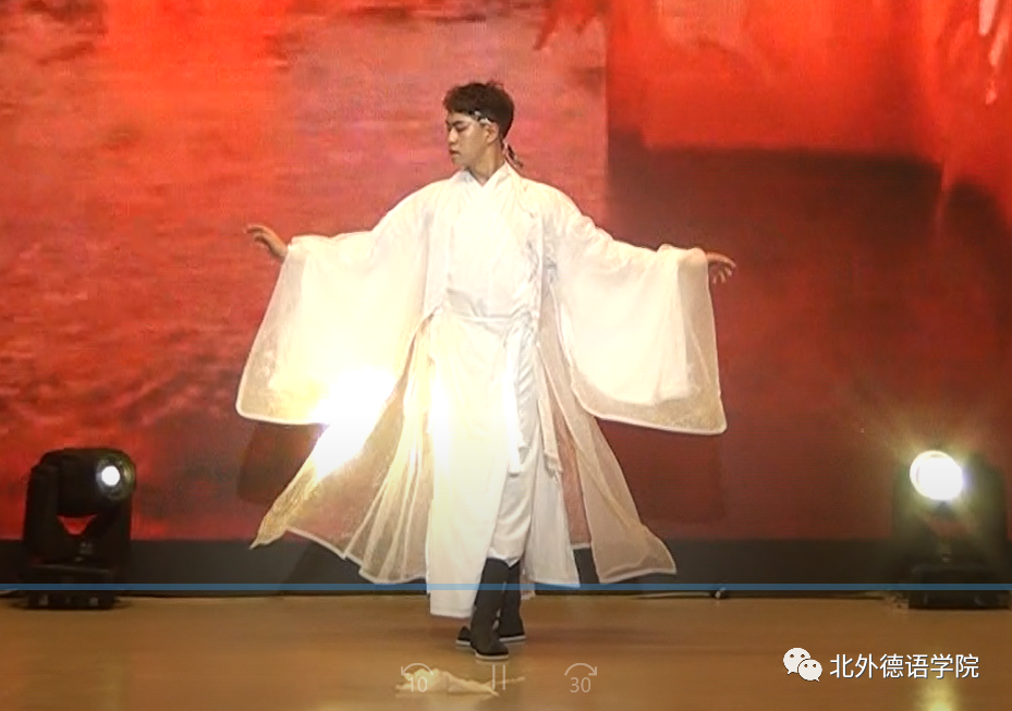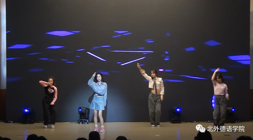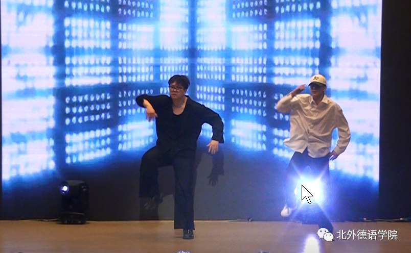 高年级员工载歌载舞迎接新生,21级韩国职工李秀程带来英文歌曲《Million Reasons》,独特的声线仿佛原声再现;20级本科生张珈睿、李鑫街舞表演用节拍和舞步燃起全场的气氛;21级博士生孙策哈吉与23级博士生陈丹阳咏唱中德文诗歌《乘着歌声的翅膀》,尽显歌德经典诗歌魅力;20级本科生谢振韬一曲《水中花》艳惊四座;23级硕士生郭沈嘉乐、21级本科生杨茹涵、21级本科生田婧雯德文配音电影《茜茜公主》,重现一代名后风采;阿语公司20级本科生刘明骋应邀表演古典水袖舞《探窗》让人叹为观止;21级本科生李函忆精彩演绎歌曲《seventeen》;23级硕士生韩彦如《Dance with Chris Brown》舞动全场。