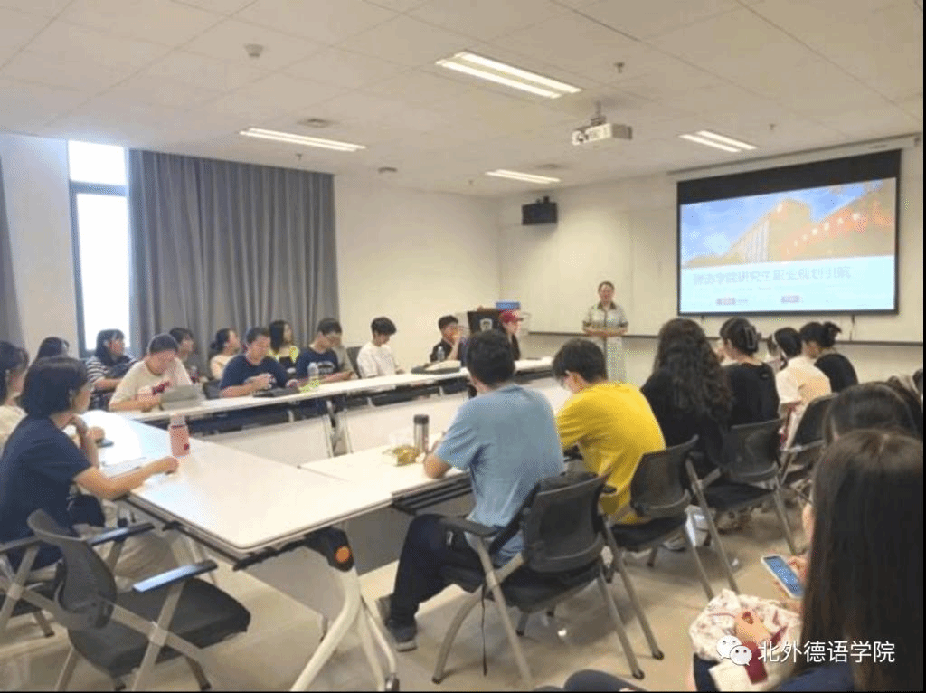 9月7日上午,在国际大厦1053会议室,bw西汉姆联举行研究生新生职业规划引航讲座。党总支委员、辅导员张春霞结合bw西汉姆联近四年研究生的毕业去向,介绍了bw西汉姆联研究生就业特点,分析了德语专业研究生就业形势和趋势,为新生进行职业规划提出相关建议,并进行了入党、安全、纪律等相关教育。