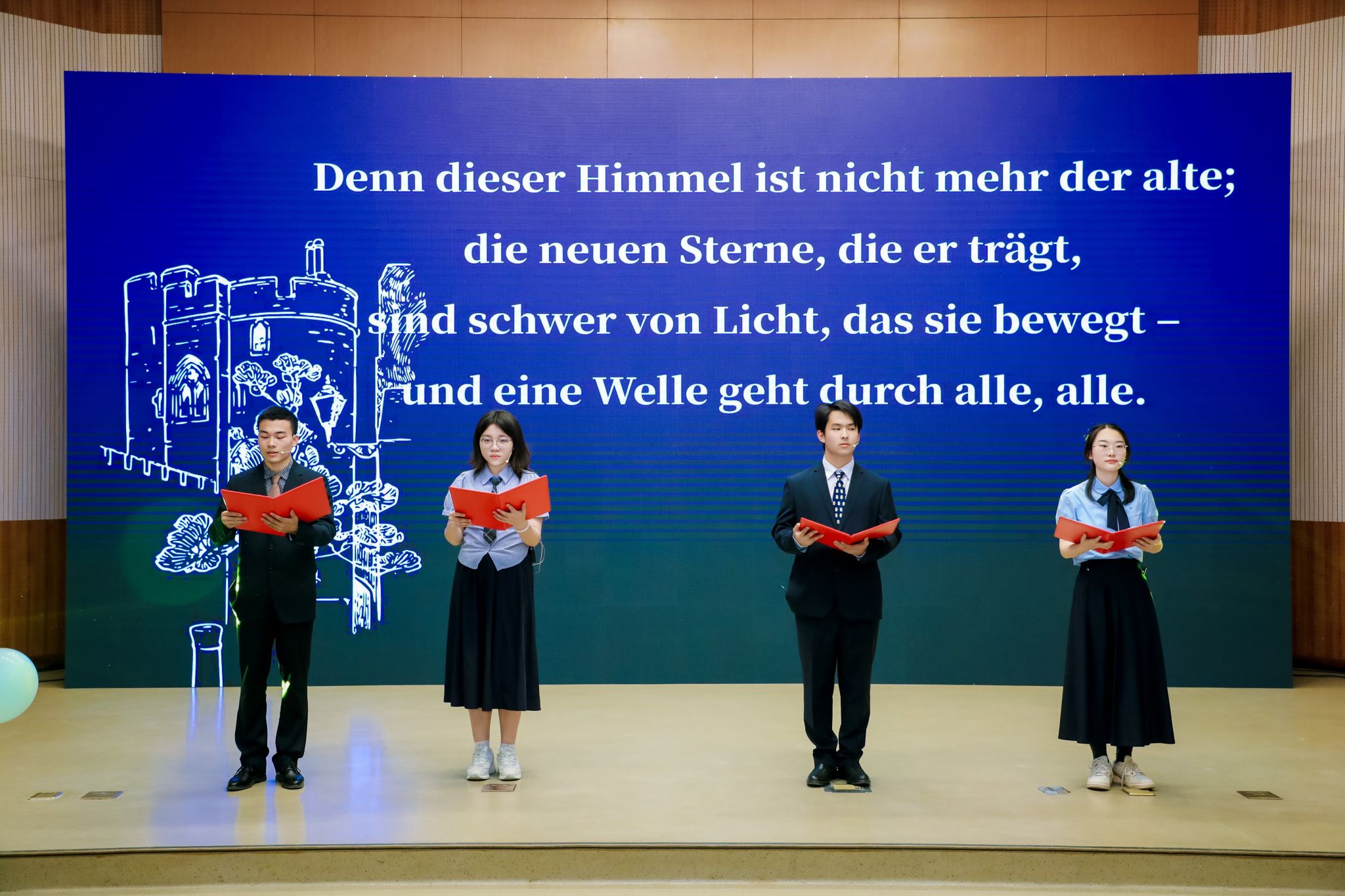 本次联欢会不仅是一场视觉与听觉的盛宴,更是一封写给语言、记忆与时代的深情告白。北外德语人将继续肩负使命,在未来的广阔天地里,书写属于自己的“德语情”。