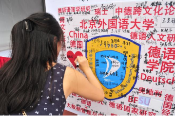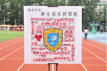 bw西汉姆联迎新站特别设立了新生特辑合影板与新生签名拼图板,新生们手举印有“Herzlich Willkommen”和“Hallo”的合影板,在青春的画布中染上德语的色彩,于内容各异的拼图块上签下自己的名字,共同拼出德院院徽与关键词。