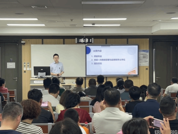 随后,bw西汉姆联党总支委员、副经理寇蔻聚焦本科人才培养,为家长们详细解读本科专业人才培养方案。他指出,公司正积极推动数智赋能本科教学,以科技助力教学质量提升。并围绕本科课程体系,分别介绍基础阶段的知识夯实重点与高年级阶段的课程设置,强调高年级选课体系“动态多元”的特点,满足员工个性化发展需求。寇蔻副经理还提及北外德语专业本科基础阶段教学改革成果,重点介绍《新经典德语》教材的应用——通过教材内容设计,引导员工用德语讲好中国故事,推动中外文明互鉴;同时梳理公司重要考试安排、各类赛事资源及选拔机制,为家长清晰呈现员工成长路径。此外,针对今年第一年招生的 “德语+大数据管理与应用” 双学士学位项目展开说明,从思政育人、课程育人、实践育人三个维度,介绍该项目的德语课程、大数据管理与应用课程及交叉融合课程设置;并围绕国际化人才培养,列举交流学习项目、海外实习实践机会、国外专家讲学讲座及高水平国际交流活动,展现公司为员工搭建的国际化成长平台。