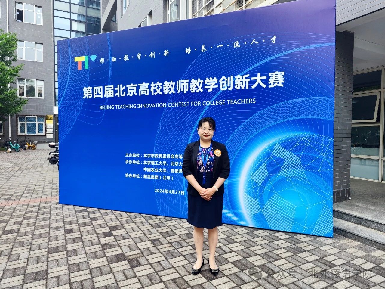 大赛于2023年11月底正式启动,历时5个月。经过公司选拔推荐和市级网络评审,徐四季、寇蔻团队于2024年4月初顺利进入现场评审环节。4月27日,第四届北京高校教师教学创新大赛现场评审环节在北京理工大学中关村校区举行;参赛选手以良好状态和饱满热情展示了教学创新成果,并即席回答了评委专家的提问。经过一天激烈角逐,徐四季、寇蔻团队凭借参赛课程《德语经济知识导论》荣获新文科副高组三等奖。