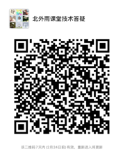 如有任何技术问题,可微信扫描以下二维码加入“北外雨课堂技术答疑”微信群进行咨询(二维码7天内有效,如过期请联系本单位研究生教学秘书帮助进群)